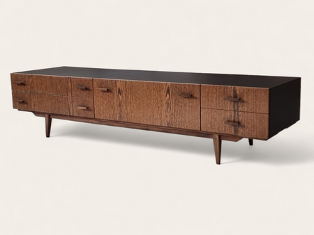 Onze Mid Century meubelstukken uit de jaren zestig zijn zorgvuldig gerestaureerd en technisch gecontroleerd door een ervaren meubelmaker. Elk meubel is dus in uitstekende staat en grondig gereinigd. Om het hout in topconditie te houden, behandelen we het bovendien met een voedende en beschermende olie.