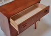 Prachtige vintage kast uit de jaren zestig, uitgevoerd in hoogwaardig teakfineer. Het strakke, minimalistische design en de warme houtkleur geven dit meubelstuk een Scandinavische uitstraling, typerend voor de Mid Century stijl.