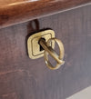 Kenmerkend zijn de slanke, taps toelopende houten poten en de bijzonder fraai vormgegeven gebogen grepen, die het meubelstuk extra karakter en verfijning geven.