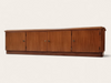Het lowboard beschikt over vier afsluitbare deuren met daarachter drie legplanken, wat zorgt voor veel praktische opbergruimte.