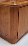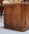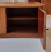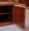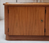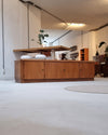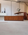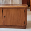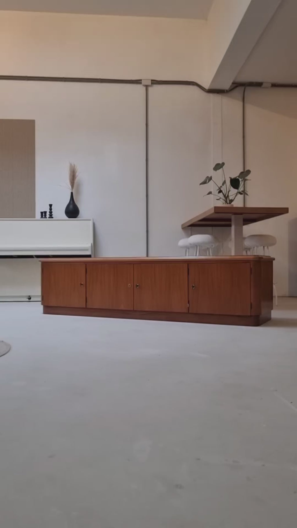 Prachtig vintage lowboard uit de jaren zestig, uitgevoerd in hoogwaardig teakfineer. Het strak vormgegeven design en de afgeronde hoeken geven het meubel een natuurlijke, Scandinavische uitstraling die perfect past binnen de Japandi-trend van organische vormen en rust.