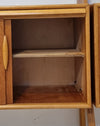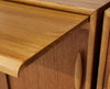 De linker kast is voorzien van twee schuifdeuren met achter elke deur een plank. Aan de bovenzijde van deze kast zit een praktische uitschuifbare plank die je eenvoudig naar je toe trekt.