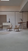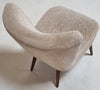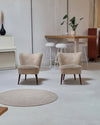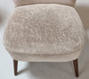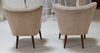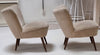 Prachtige set van twee originele cocktailstoelen uit de jaren zestig. Deze stoelen ademen de sfeer van Mid Century Design met hun strakke lijnen, Scandinavische uitstraling en rustige off white bekleding. De taps toelopende houten poten zorgen voor een elegante, tijdloze look.
