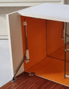 De kast beschikt over een klep met daarachter een glazen plank en een achterwand van spiegelglas — perfect om je mooiste glazen en drankjes tentoon te stellen of er een stijlvolle koffiehoek van te maken. Onder de klep bevindt zich een open vak, ideaal voor extra opbergruimte.