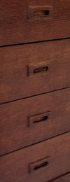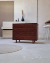 Deze stijlvolle kast heeft een natuurlijke Scandinavische uitstraling dankzij het strakke ontwerp en het gebruik van hoogwaardig eikenfineer. De ronde, conisch gevormde houten poten geven het geheel een extra elegante touch. Ook de fraai ingelegde houten grepen dragen bij aan het karakteristieke ontwerp.