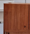 Dit bijzondere midboard uit de jaren zestig straalt echte Scandinavische elegantie uit. Het strak vormgegeven design in hoogwaardig teakfineer wordt prachtig aangevuld door de ronde, conische houten poten die het meubel extra cachet geven. De subtiele, geblokte motieven in de middelste baan zorgen voor een speels en uniek accent.