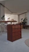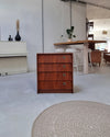 Deze stijlvolle schoenenkast heeft een natuurlijke Scandinavische uitstraling dankzij het strakke design en het gebruik van hoogwaardig teakfineer. De metalen grepen geven de kast een karaktervol accent.