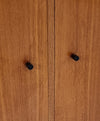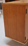 Dit stijlvolle sideboard uit de jaren zestig heeft een natuurlijke Scandinavische uitstraling dankzij het strakke design en het gebruik van hoogwaardig, licht gebeitst teakfineer. De elegant taps toelopende houten poten geven het meubel een luchtige, verfijnde look, terwijl de zwarte knoppen en scharnieren zorgen voor een stoer contrast.