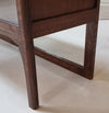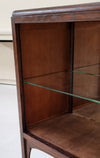 Een verfijnde en stijlvolle vitrinekast uit de jaren vijftig, uitgevoerd in hoogwaardig notenfineer. Het design is strak, maar met klassieke details die zorgen voor een luxe en tijdloze uitstraling.