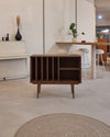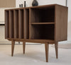 Geïnspireerd door het iconische Mid Century design, straalt platenspelerkast Bastian een verfijnde Scandinavische sfeer uit. Het strakke lijnenspel en het gebruik van hoogwaardig hardhout geven de kast een warme, natuurlijke uitstraling. De elegant taps toelopende, conische massief houten poten zorgen voor een stijlvol accent en extra karakter.
