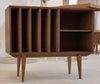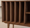 De kast biedt ruimte aan je vinylcollectie met vijf vakken voor platen, en beschikt daarnaast over een open vak aan de rechterzijde, voorzien van een uitneembare plank – ideaal voor je platenspeler of accessoires.
