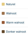 De kleur op de foto's is donker walnoot. De kast is ook beschikbaar in naturel, walnoot en warm walnoot.